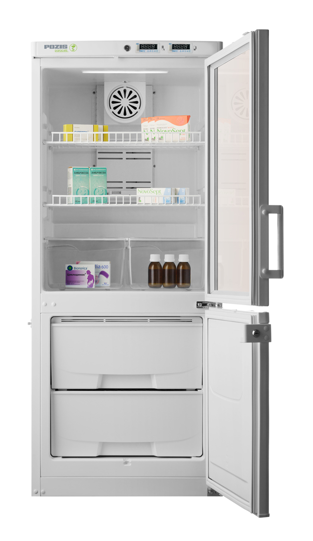 Предназначен для работы в лабораториях различных направлений и диагностических центрах (ПЦР, биохимические, иммунологические и гематологические исследования), на станциях переливания крови и в серологических лабораториях, при оснащении аптек, аптечных производственных отделений и фармацевтических предприятий, прививочных кабинетов и ветеринарных клиник. Холодильник обеспечивает потребность в хранении лекарственных препаратов, средств, образцов, тест-наборов и других фармацевтических средств при температуре от +2°С до +15°С в холодильной камере и при температурах от минус 10°С до минус 25°С в морозильной камере. Основные характеристики: 2 микропроцессорных регулятора температур со сверхчувствительными датчиками температуры, система принудительной циркуляции воздуха в холодильной камере, в холодильном отделении дверь стеклянная с замком, в морозильном отделении дверь металлическая с замком, автоматическое поддержание температуры в камерах, сигнализация при отклонении температуры от заданной, отображение температуры на табло панели управления, отключение вентилятора при открывании двери.