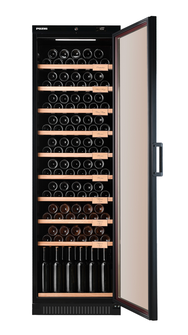 Предназначен для демонстрации и хранения при заданной температуре охлажденных вин. Особенности и дополнительные элементы: полки 9 штук и полка-подставка (дерево), вместимость до 120 бутылок вина, микропроцессорный регулятор температуры со сверхчувствительным датчиком, возможность регулирования температуры на внешней панели управления, световая индикация режима работы, электронный блок управления, дверь-стеклопакет с тонированным покрытием против проникновения УФ-лучей с замком, автоматическое поддержание температуры в камере.